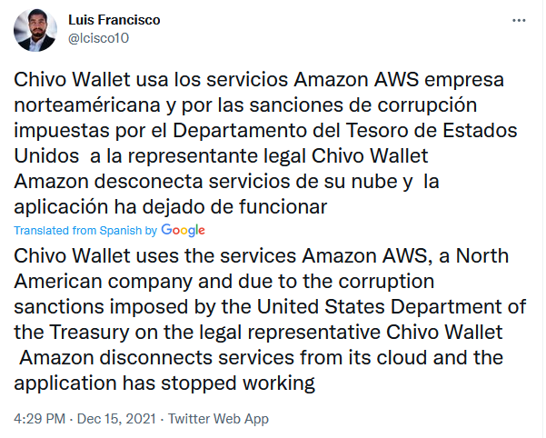 Why does Chivo have so many problems? Of course it's a big project and they only had 3 months time to set it up, but now it's December 6 months have gone by and still there are so many serious flaws. Is this an attack on Bitcoin? Do the altcoin project managers want it to fail? I don't know. I just find it weird. After finishing this article I heard that some of the problems with Chivo were solved in a software update. Still, its custodial, centralized and the code is running on Amazon Web Services in the U.S..