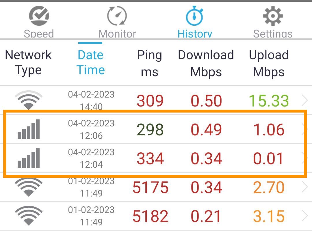 The mobile Internet speed at the time of testing in February 2023: