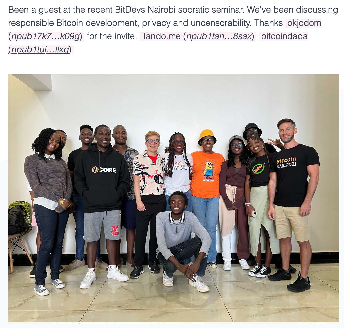 That’s why innovative solutions to spend and save bitcoin like Tando and BITSACCO in Kenya, payments at PicknPay in South Africa, Nostr and eCash make Bitcoin practical to use and accessible in daily life. Change starts at the ground level, with people who see Bitcoin as a tool to solve real problems.