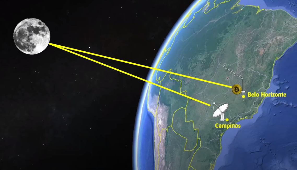 While you are maybe waiting for bitcoin's price to go to the moon, one Bitcoin transaction was already on the moon. On April 24th 2021 a group of radio amateurs in Brazil sent a transaction from Belo Horizonte to the Moon and back to Campinas.
